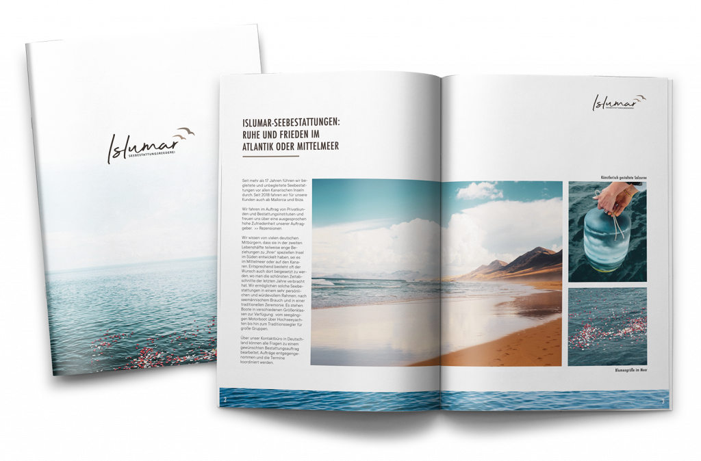 Für die Information und Beratung stellen wir kostenfreie Informationsunterlagen für Vorsorge oder akute Sterbefälle zur Verfügung. Darin finden Sie verständliche Erläuterungen zu den Möglichkeiten und der Organisation einer Seebestattung in Spanien sowie Vorlagen für Bestattungsverfügungen.